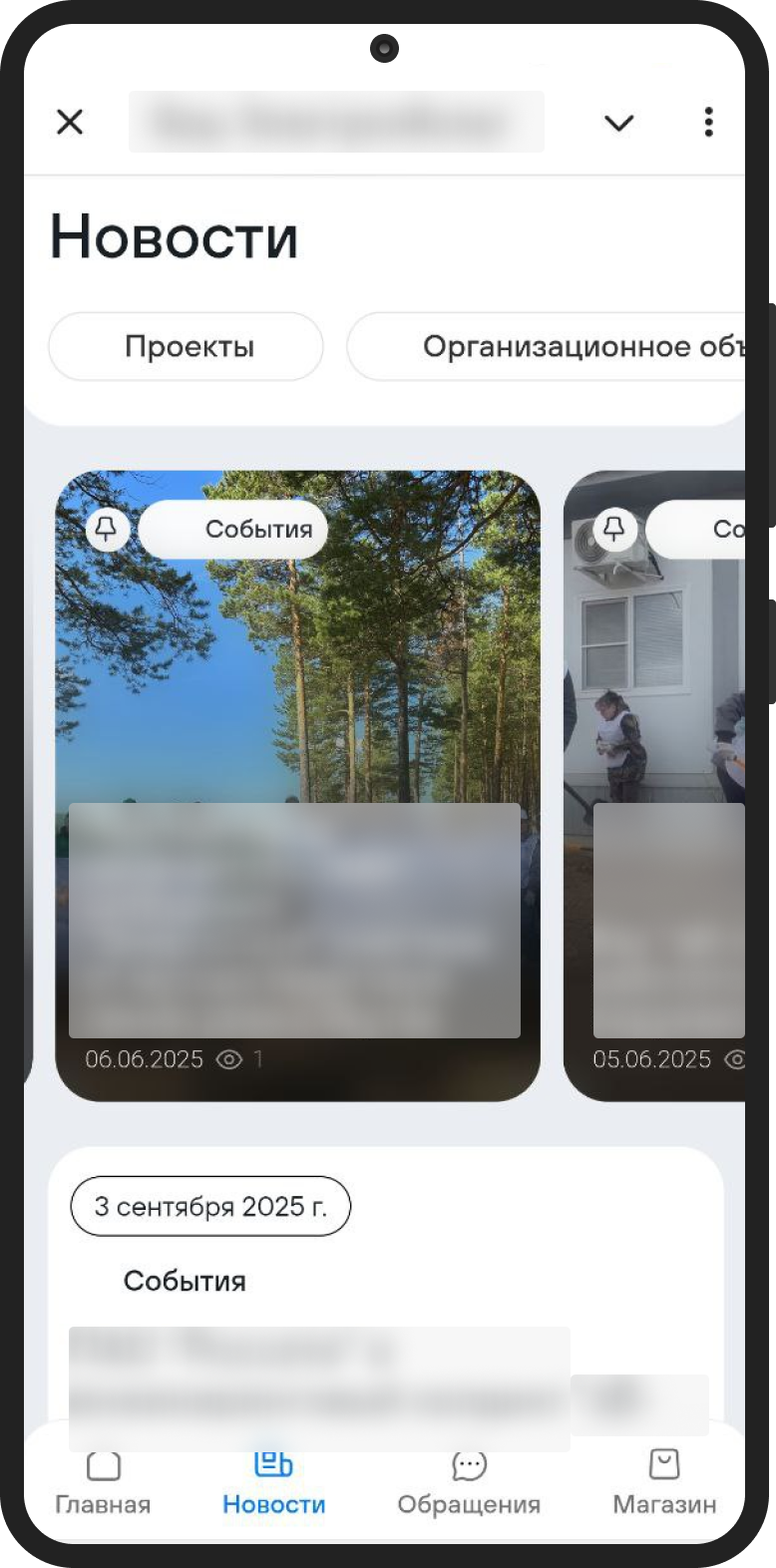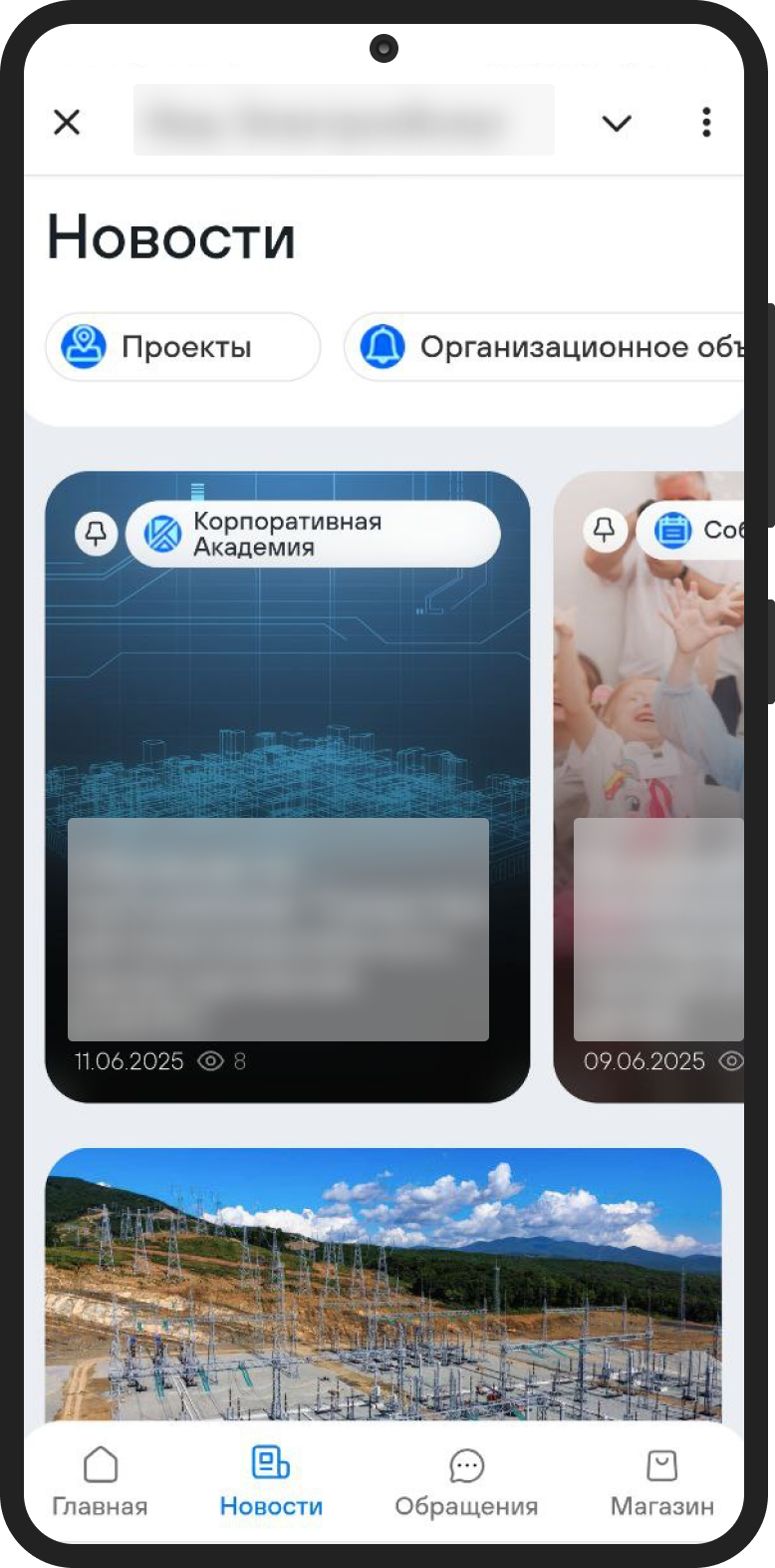 Новости компании. Всё в одной ленте: достижения, объявления, мероприятия с фотографиями и фильтрацией по темам.