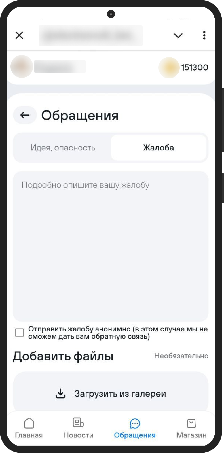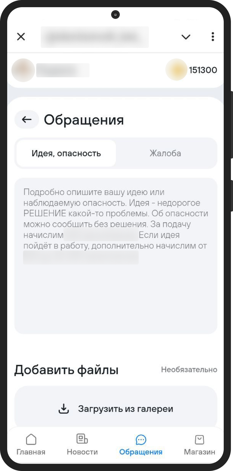 Идеи и жалобы. Можно сообщить об опасности, предложить идею или пожаловаться. За каждую идею сразу начисляют 400 внутренних баллов. А если её реализуют, ещё от 500 до 20 000. Кстати, делать это можно анонимно — например, сообщать о нарушениях, не боясь последствий.