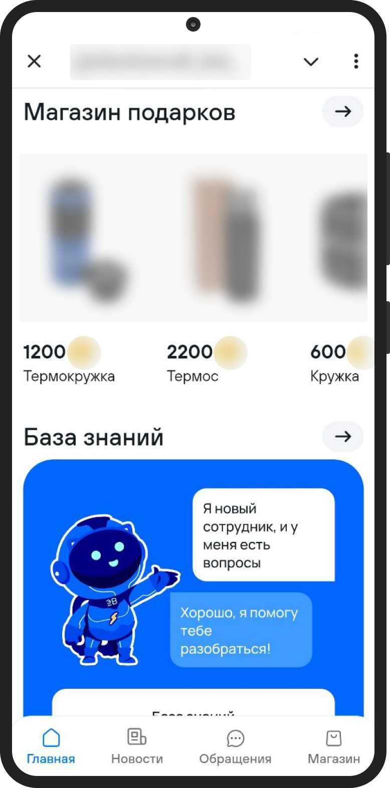 Но тут появилась пара нюансов. Для ленты новостей, магазина с каталогом товаров и базы знаний оказалось недостаточно меню в чате — оно становилось слишком громоздким, а нам было важно, чтобы пользоваться продуктом было удобно. По той же причине мы перенесли в мини апп сообщения с транзакциями, статьи и формы с множеством полей (например с подачей идеи, подкреплённой файлом).